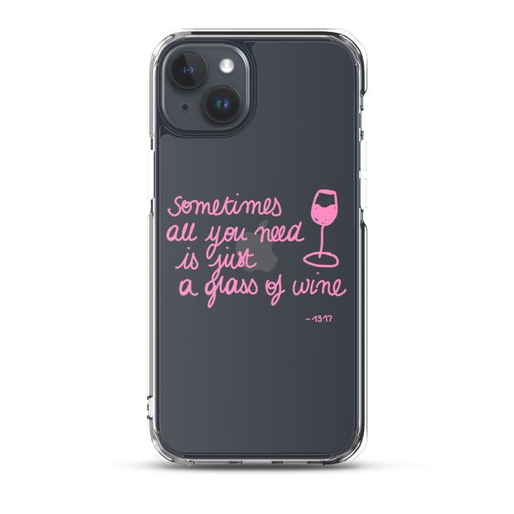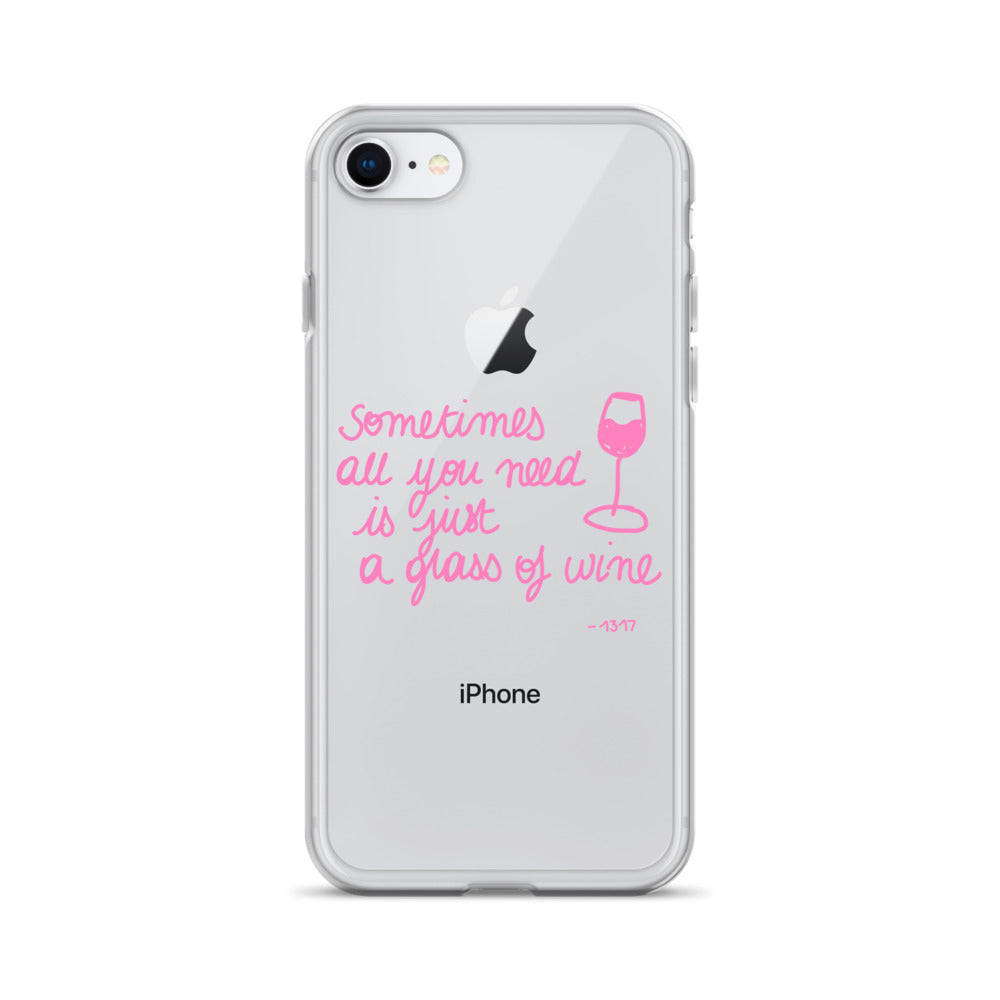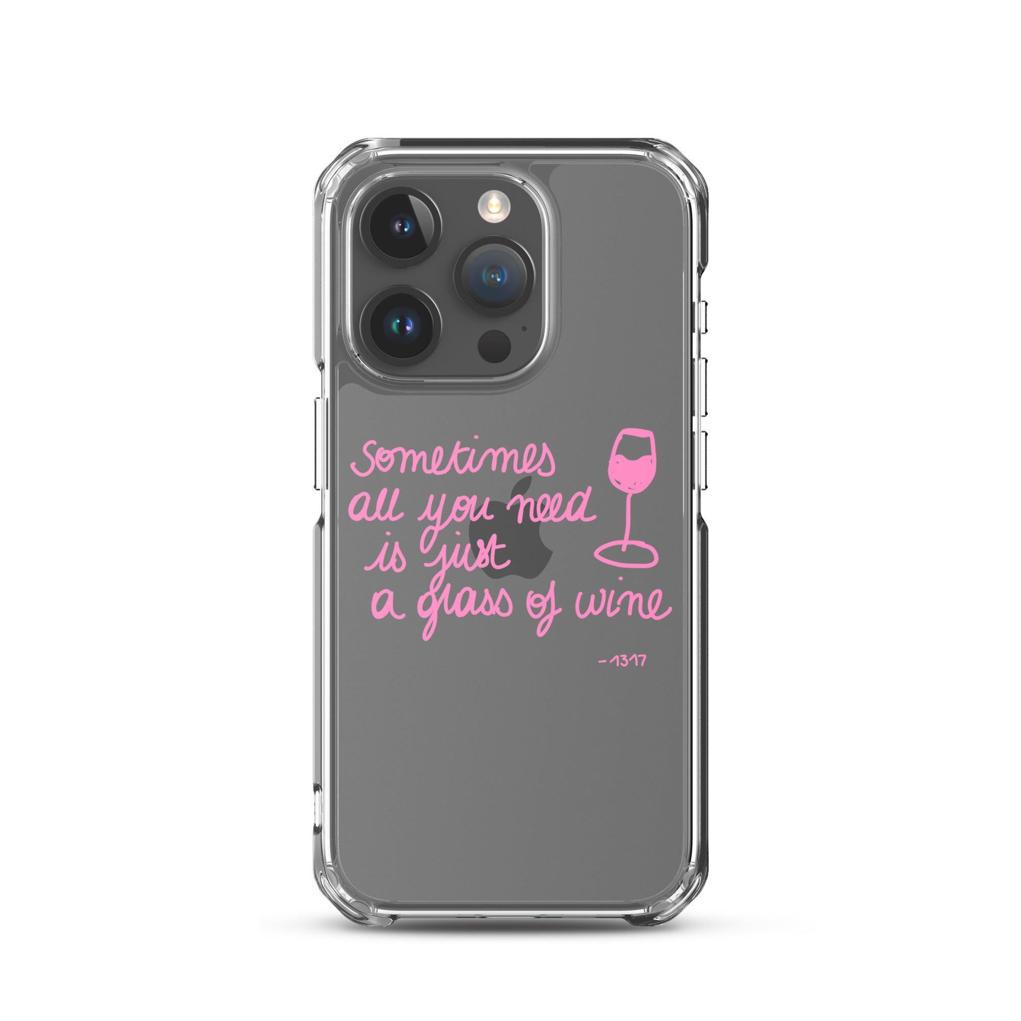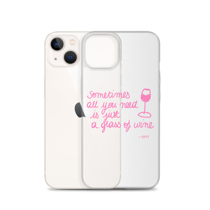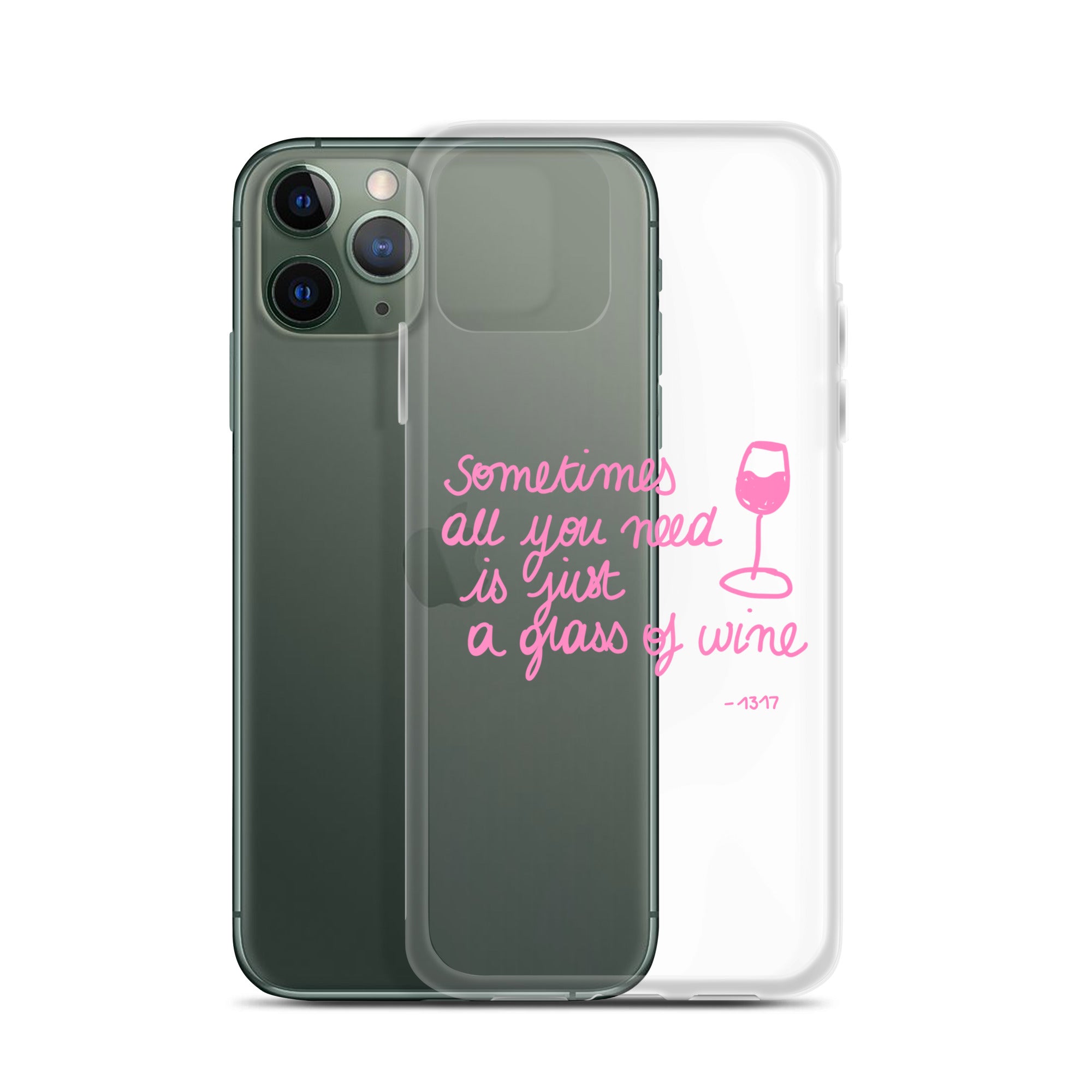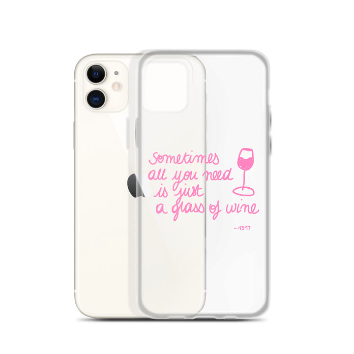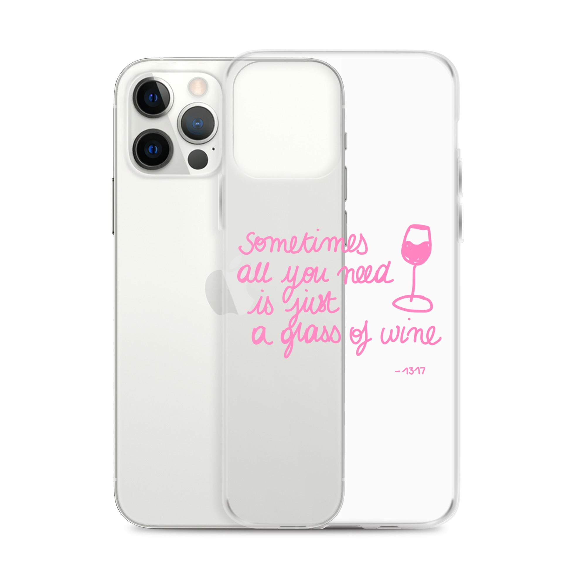 Transparent iPhone case "Sometimes all you need is just a glass of wine" pink.