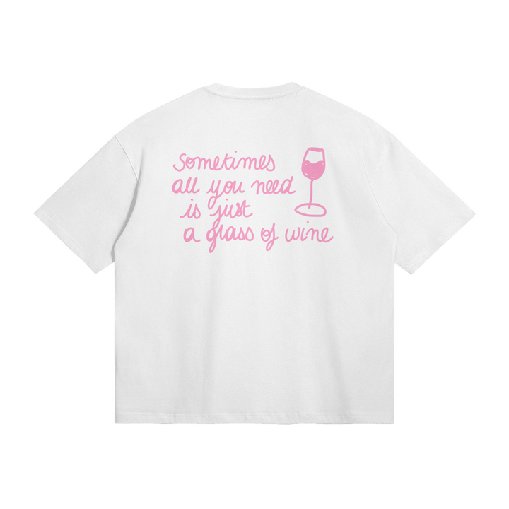 White and pink “sometimes all you need is a glass of wine” t-shirt.
