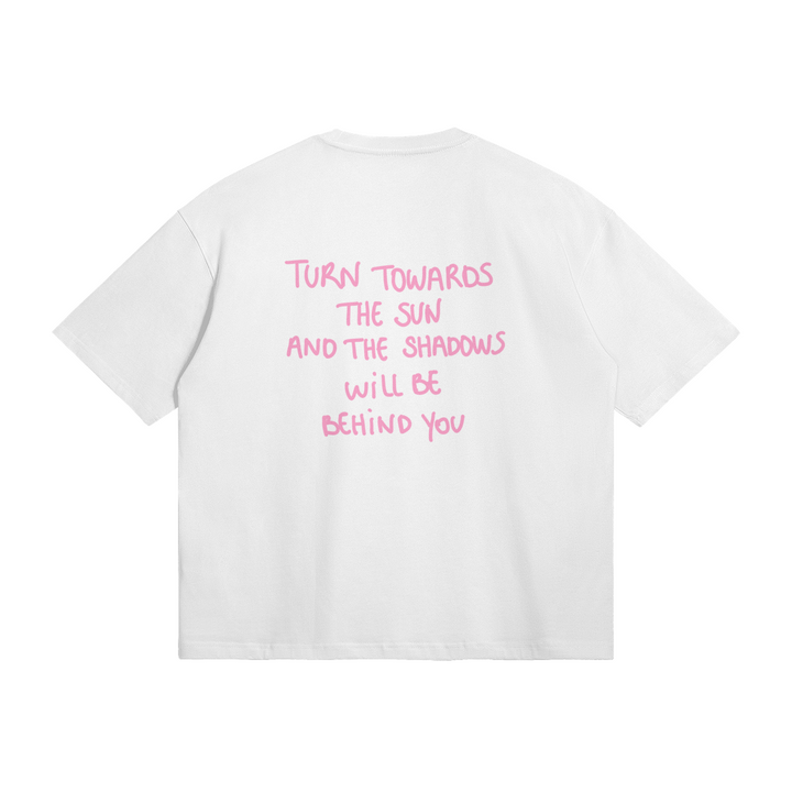T-shirt « turn towards the sun and the shadows will be behind you " white pink color writing.