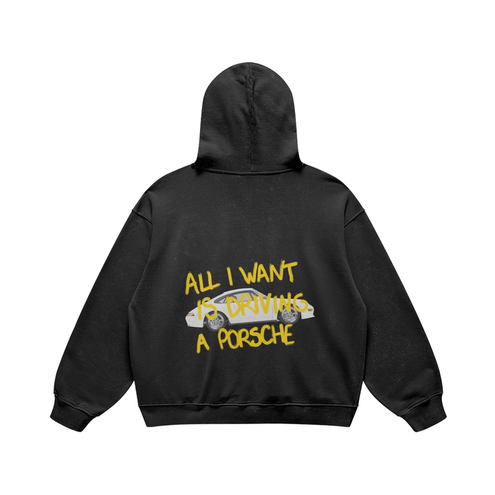 Hoodie All I want is driving a porsche jaune