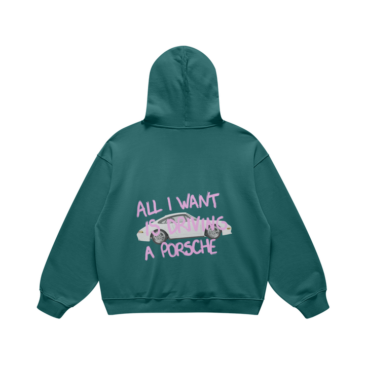 Hoodie All I want is driving a Porsche vert et rose