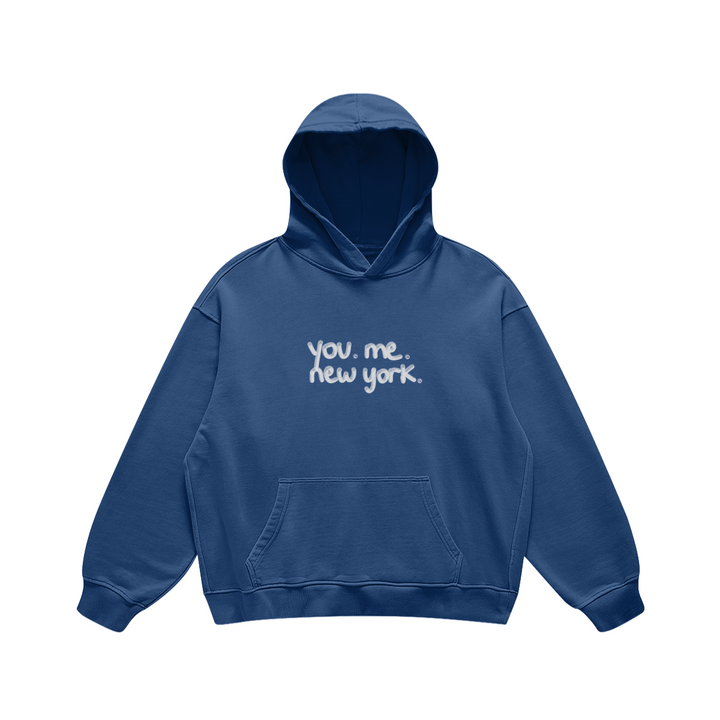 Sweat-shirt à capuche oversize et unisexe "you. me. new york." bleu marine.