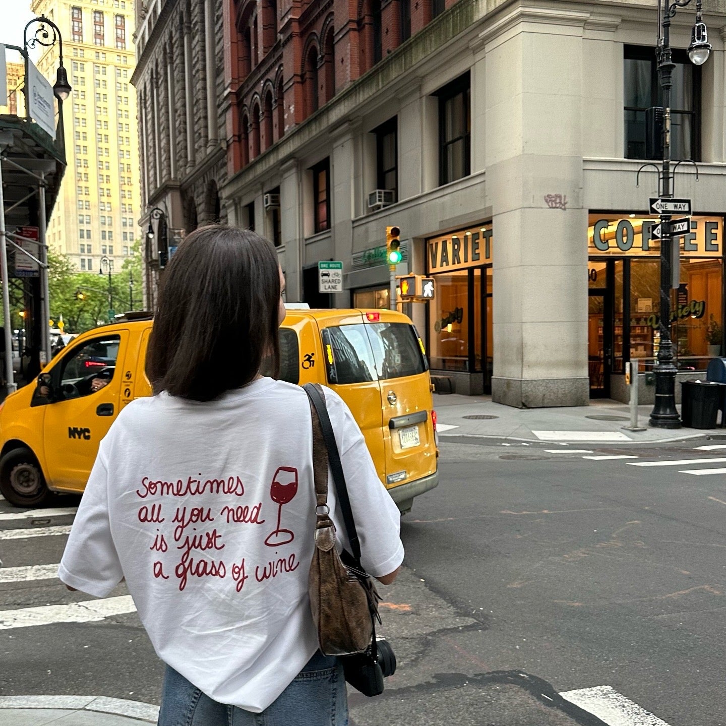 T-shirt "sometimes all you need is a glass of wine" blanc et rouge.